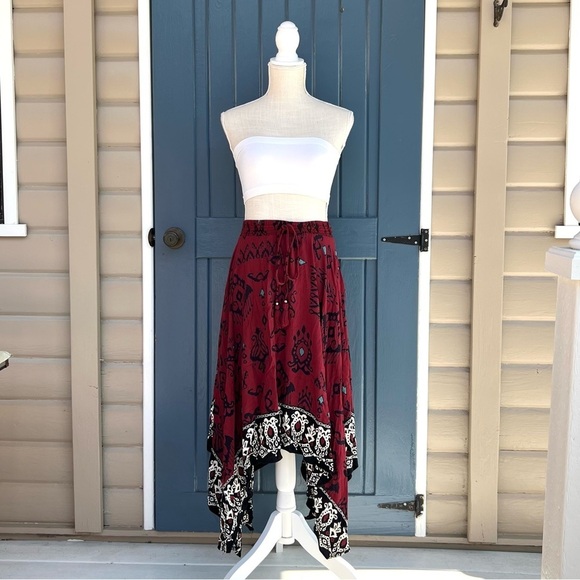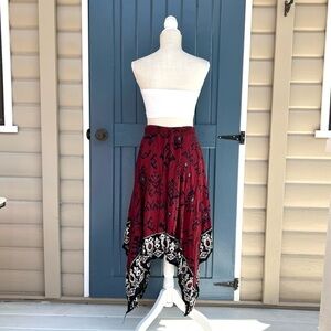 Lola Red and Black Asymmetrical Maxi Skirt Boho