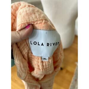 Lola River Apricot Peach Orange Crinkle Gauze Cotton Long Sleeve Button Down