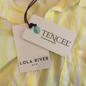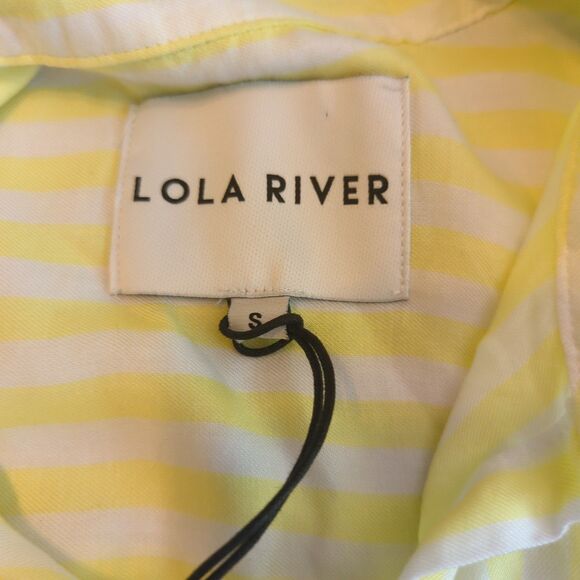 Lola River Kate Blouse Top Womens Small Yellow White Stripe Tencel Lightweight