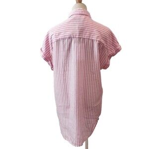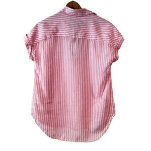 Lola River Pink White Striped Miley Popover Top Carnation Small Linen Blend