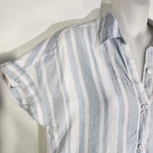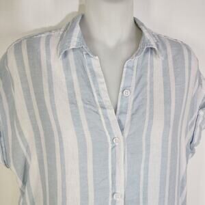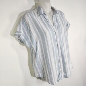 Lola River Womens Shirt Linen Blend Striped Button Up Short Dolman Cuff Sleeve S