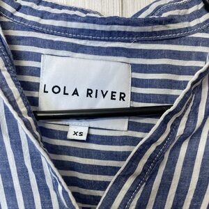 Lola River XS Linen Blend Striped Tunic Top Blue White Flowy Summer Coastal Chic