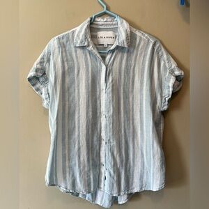 Lola River size L blue and white striped coastal linen blend cap sleeve blouse.