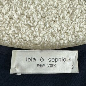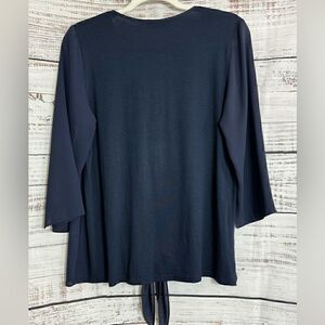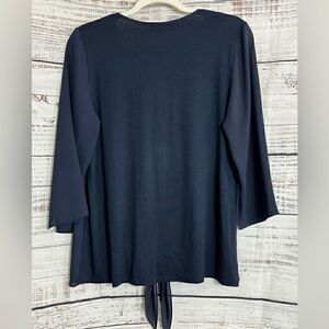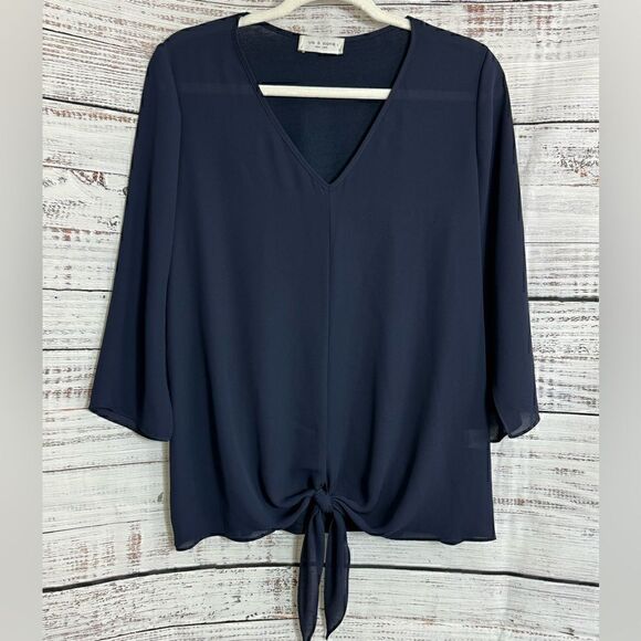 Lola & Sophie Blouse Womens Size Small V Neck tie front Polly Chiffon Navy Blue