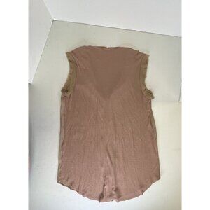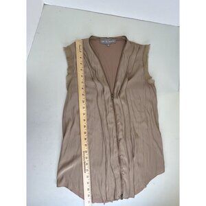 Lola & Sophie Frayed Sleeveless Zip-Up Blouse Size XS Tan Tank V-Neck