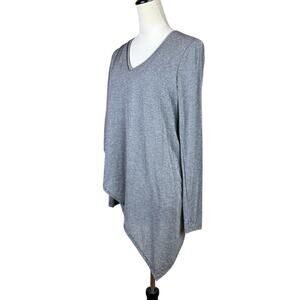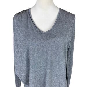 Lola & Sophie Gray Thin Knit Silver Metallic Long Sleeve Asymmetrical Fitted Top