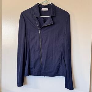 Lola & Sophie Navy Asymetrical Zip Front Light Weight Moto Style Jacket Small