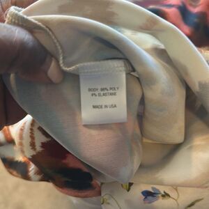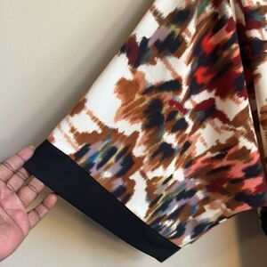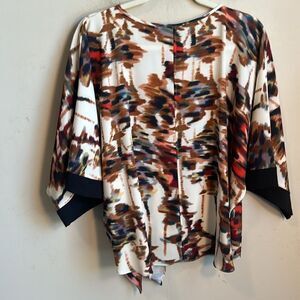 Abstract print blouse boatneck, with wide sleeves and side hemline tie. In EUC.