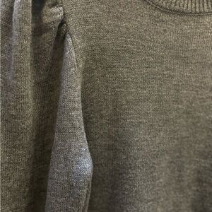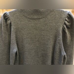 ~Featuring pretty puffed shoulders, mock neck style, neutral grey color, ribbed trim collar and cuffs