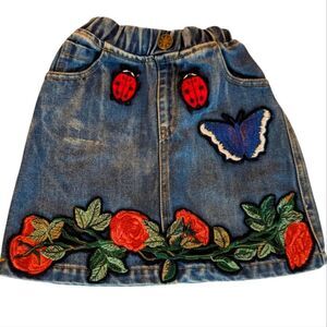 Lola + The Boys Denim Butterfly Flower & Ladybug Patch Jean Skirt Girl 7
