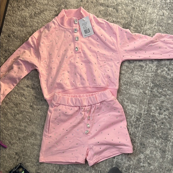 Lola + The Boys Pink Button-Up sparkle short Set