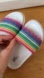 Vibrant slides with glittery multicolor straps. Ideal for playful days.