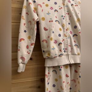 Super Soft Rainbow Heart Smile Star Flower Full Zip Hoodie & Sweatpants Set. No Flaws Seen