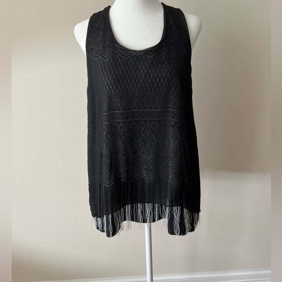 Lola and Sophie double layer silk tank with fringes on the bottom. Zero flaws. Pristine Condition. Size L. Great with jeans or any nice pant.