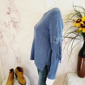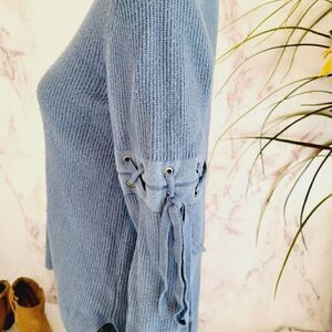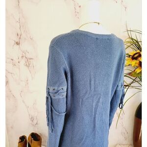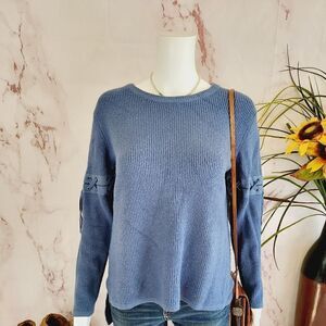 Excellent condition no flaws Lola pullover super soft French blue sweater with braided sleeve details. Made in Italy. Sized small