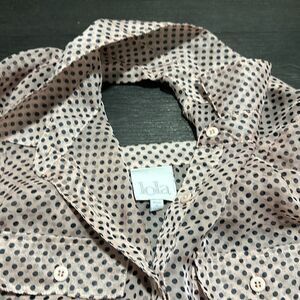 Used sheer top polka dot size medium. Made in China. 100% polyester.