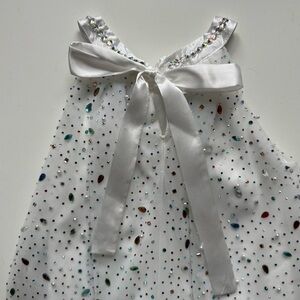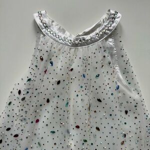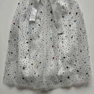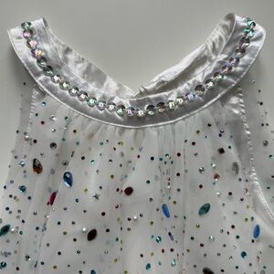 • The high neckline is delicately embellished with a row of gems, adding a touch of elegance to this whimsical design.