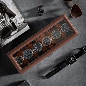 Lolalet Watch Box for Men 6 Slot Display Case Drawer Storage Organizer Glass