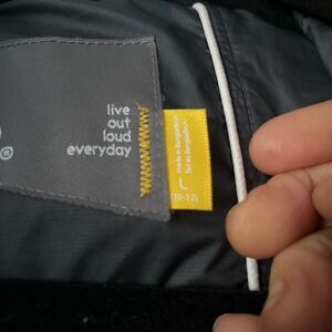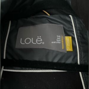 Lole Live Out Loud Every Day black hooded puffer jacket, new, without tags, worn once for modeling purposes, trim, pockets, zippers, fasteners all over. Warm, stunning, excellent condition, size Large.