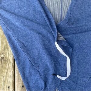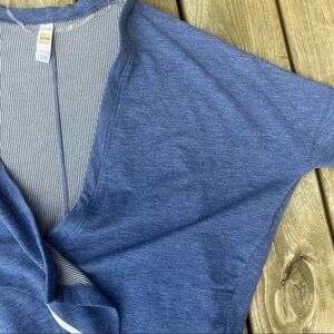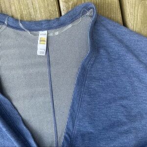 Lole Oversized Front Tie Cardigan in a blue color with internal striping.