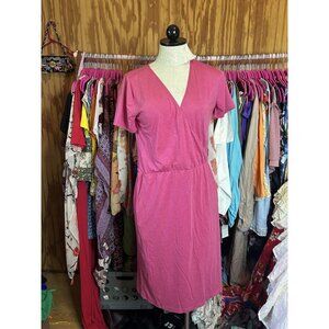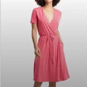 Lole Pink Faux Wrap Fit & Flare Dress Pockets Stretch Short Sleeve NWT Pockets M