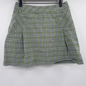 Lole Skort Women 8 Green Plaid Pleated Stretch Tennis Preppy Golf Quick Dry