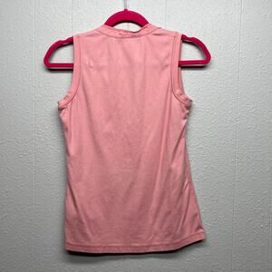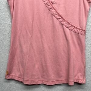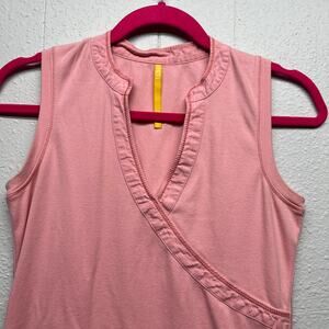 Lole women's pink ribbed top. Sleeveless. Ruffle trim. Stretch. Lightweight. In good used condition. No stains, tears or holes.