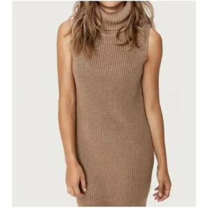 Lole Tan Sleeveless Turtleneck Chunky Knit Sweater Dress Size Large