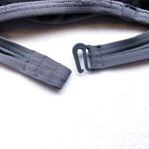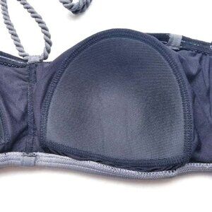 Lole Tropez bandeau bikini top. You can wear this three different ways. Can be worn strapless, as a bandeau top, can be worn halter style with the twist cord, or it can be worn with regular straps. Hooks in back, has three slots for adjusting fit. Lightly padded cups. Color is medium gray. Model pictures just to show how this style looks for all options. This listing is for one gray Tropez bandeau top. NWT. Size XL. Reviews say best for med to small busted women.