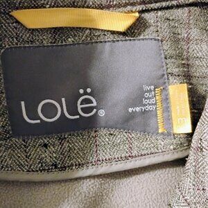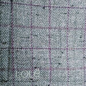 Lole tweed peacoat jacket. Very nice to excellent condition. Grey with purple plaid. Fleece lined. Very cozy jacket!