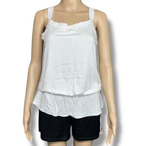 Lole Womens Tank Top Embroidered Elastic Peplum Waistband Pullover White Large