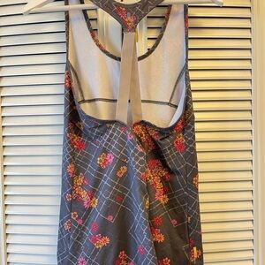 Floral pattern with gray background Elastic straps in back for comfortable fit Lightly worn