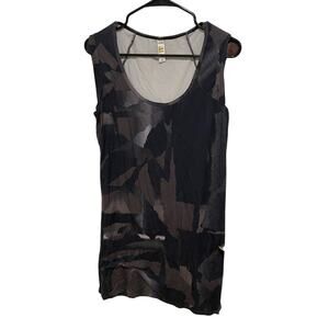 This chic mini dress by Lole features a modern tank top style with a sleeveless design and a rounded neckline. The abstract pattern in black and gray creates a sophisticated smoky effect, adding a touch of elegance to the dress. Crafted with a silky sheen, this dress is perfect for making a stylish statement.