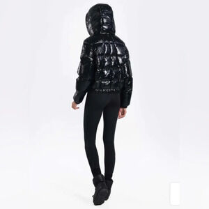 The Lolë Le Everly is a sleek, extra-warm down puffer coat designed for both style and function. Quilted with 80% duck down and 20% feathers for lightweight insulation, it features a glossy black nylon shell, zip front, and modern silhouette. Sold originally at Nordstrom.