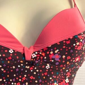 Lole push up tankini swim top swim suit in coral pinkish & brown with multi floral print. Removable pads. Pre owned in good condition. Sz M