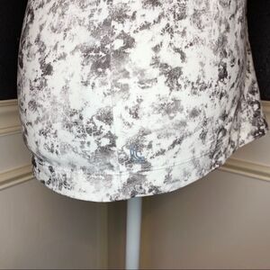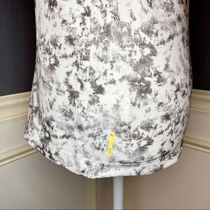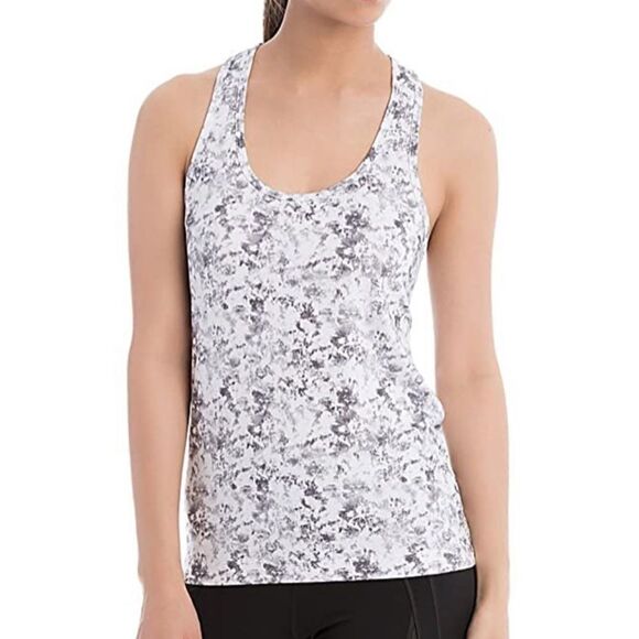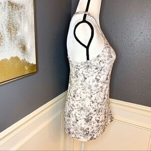 Lolë Fancy Tank in the print White Gallery which is a white background with grey tie dye.
