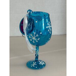 This handpainted Lolita ornament adds a festive touch to holiday decor. Its sapphire blue glass and snowflake design bring winter charm to your tree.