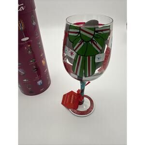 Lolita Wine Glass “Tie One On” Hand Painted Bows Present Christmas Birthday