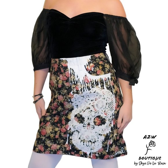 This high waisted one-of a-kind skirt was designed and sewn by artist Skye De La Rosa, and no exact copy will ever be made.