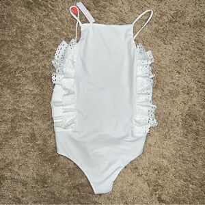 Lolli Bathing Suit White Ruffle Cheeky One piece Swimsuit Size Large NWT