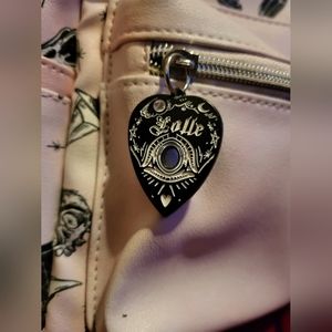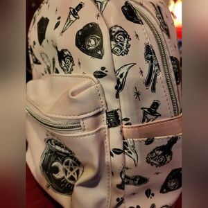 Witchy Ouiji board Vibes mini back pack. Pale pink with black detailed designs. Planchette Zipper Trinket. Brand New, never used.