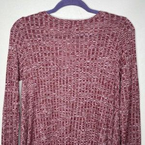 Lollipop Star Size M Burgundy Ribbed Lightweight Knit Long Sleeve V Neck Dress