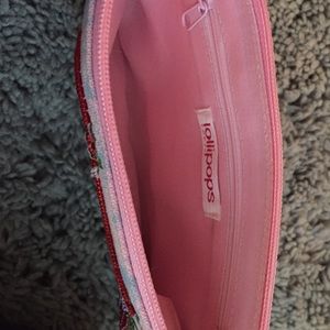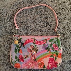 Beautiful "Lollipops Garden" design. Beading on the front, no beading on the back. Detachable shoulder straps. 1 interior pocket. Never used. Gift purchased in Paris, France. Hand-made. No tags.