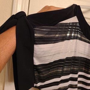 Lollol Black & White Striped Silver Detail Cold Shoulder Blouse