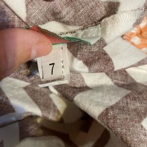 Fall Long Sleeved Peasant Dress Brown and white Chevron print Orange hem trim Pumpkin appliqué on front Size 7 Smoke free home