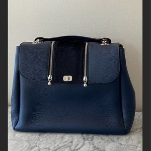 Stunning and unique navy leather satchel by Lolo Chatenay, a luxury French handbag designer, who sources their leather from the same purveyors as Hermes and uses the same artisans as Chanel to construct their bags.