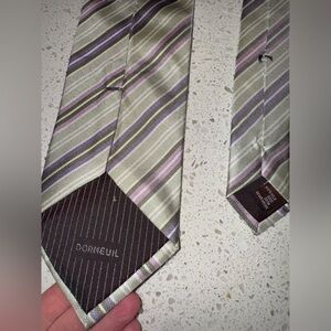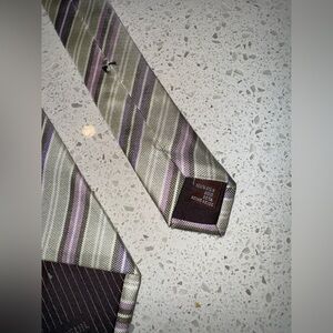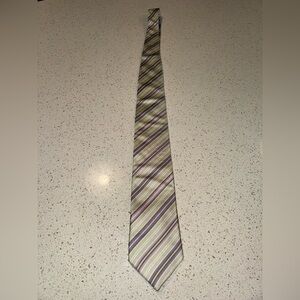 Elevate your style with this elegant men's tie featuring a sophisticated striped pattern. The blend of green and purple hues adds a touch of class to any outfit.