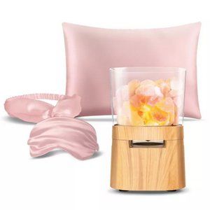 Lomi Relaxation 4-In-1 is the perfect gift for someone special. The Himalayan salt speaker has 7 gentle color- changing lights that react to your tunes while providing the air-purifying benefits of natural Himalayan salt. The satin eye mask, headband, and pillow case combo create the best environment for an uninterrupted nights sleep.