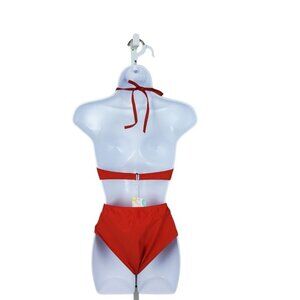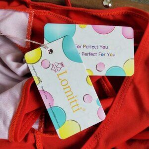 Lomitti Mesh Inset One Piece Monokini Swimsuit With Cut Outs In Red Size Small
