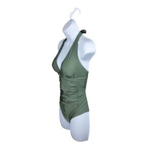 Lomitti Ruched Keyhole Back Tummy Control Low Cut One Piece Swimsuit In Green XL